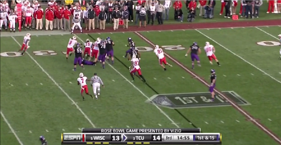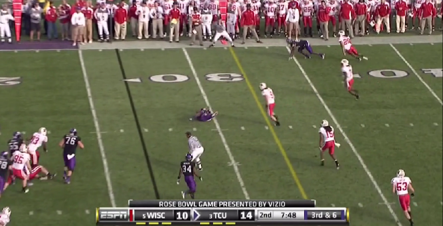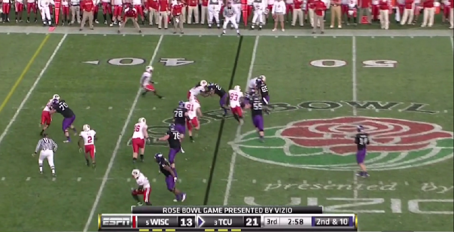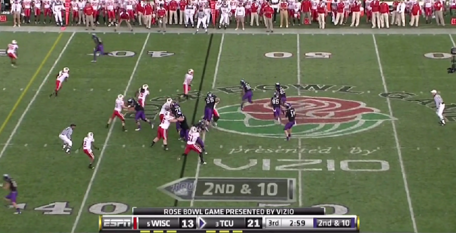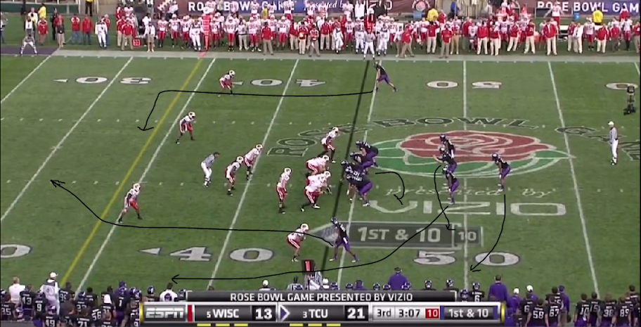 One of TCU's featured plays this year was the Dash or inverted veer play (which I've already covered here). As I stated at the beginning of the post I mentioned that the diamond is nothing more than a formation to operate YOUR offense out of, and that is what TCU did by adapting the formation to the dash play.